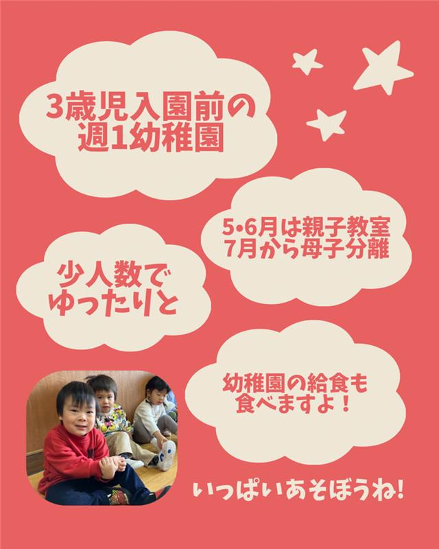 令和8年度 2歳児教室『いちご組』の入会募集中です! 週1回のプレ幼稚園です。