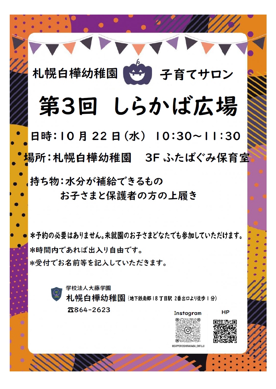 10月22日(水)10:30~『第3回しらかば広場』を開催します。たくさんのご参加お待ちしております!
