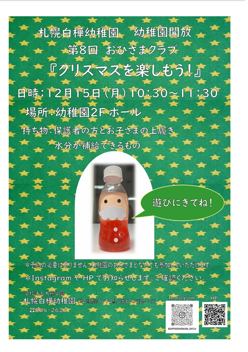 2025.12.08 第8回おひさまクラブ『クリスマスを楽しもう!』第7回おひさまクラブの様子 12月15日(月)10:30~第8回おひさまクラブ『クリスマスを楽しもう!』を開催します。ご参加お待ちしております。第7回の様子もご紹介します!