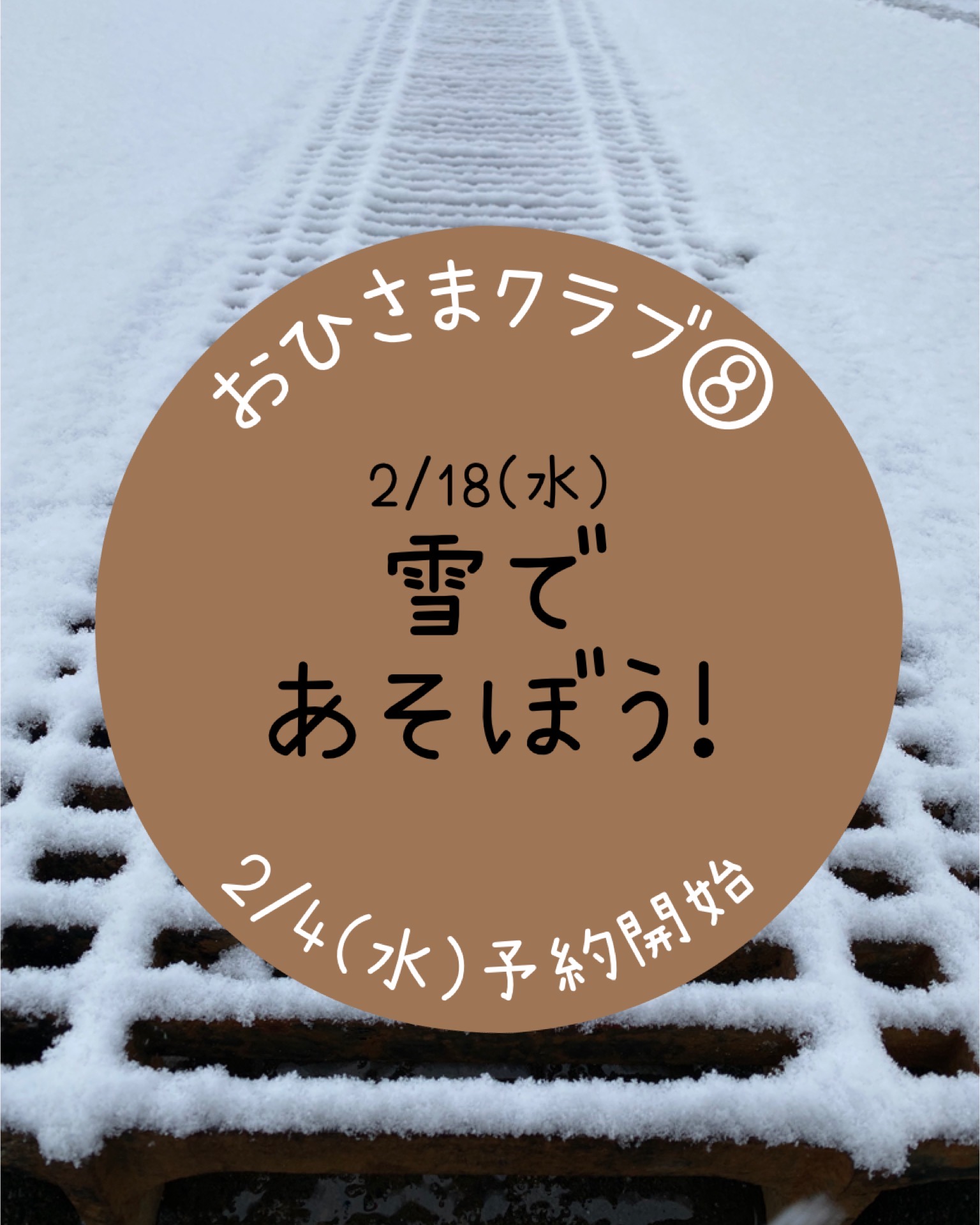 今回は広い園庭で雪遊びを楽しみますよ❄前回のおひさまクラブは大雪で残念ながら中止に😢今年度最後のおひさまクラブです!