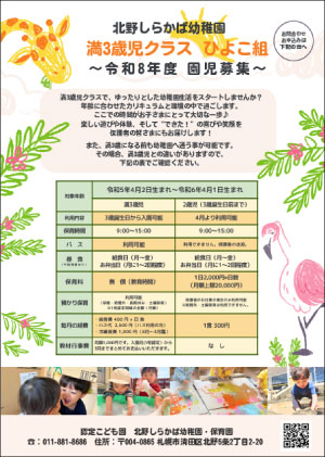 | 年長組(5歳児) | 令和2年4月2日以降誕生 | 若干名 |